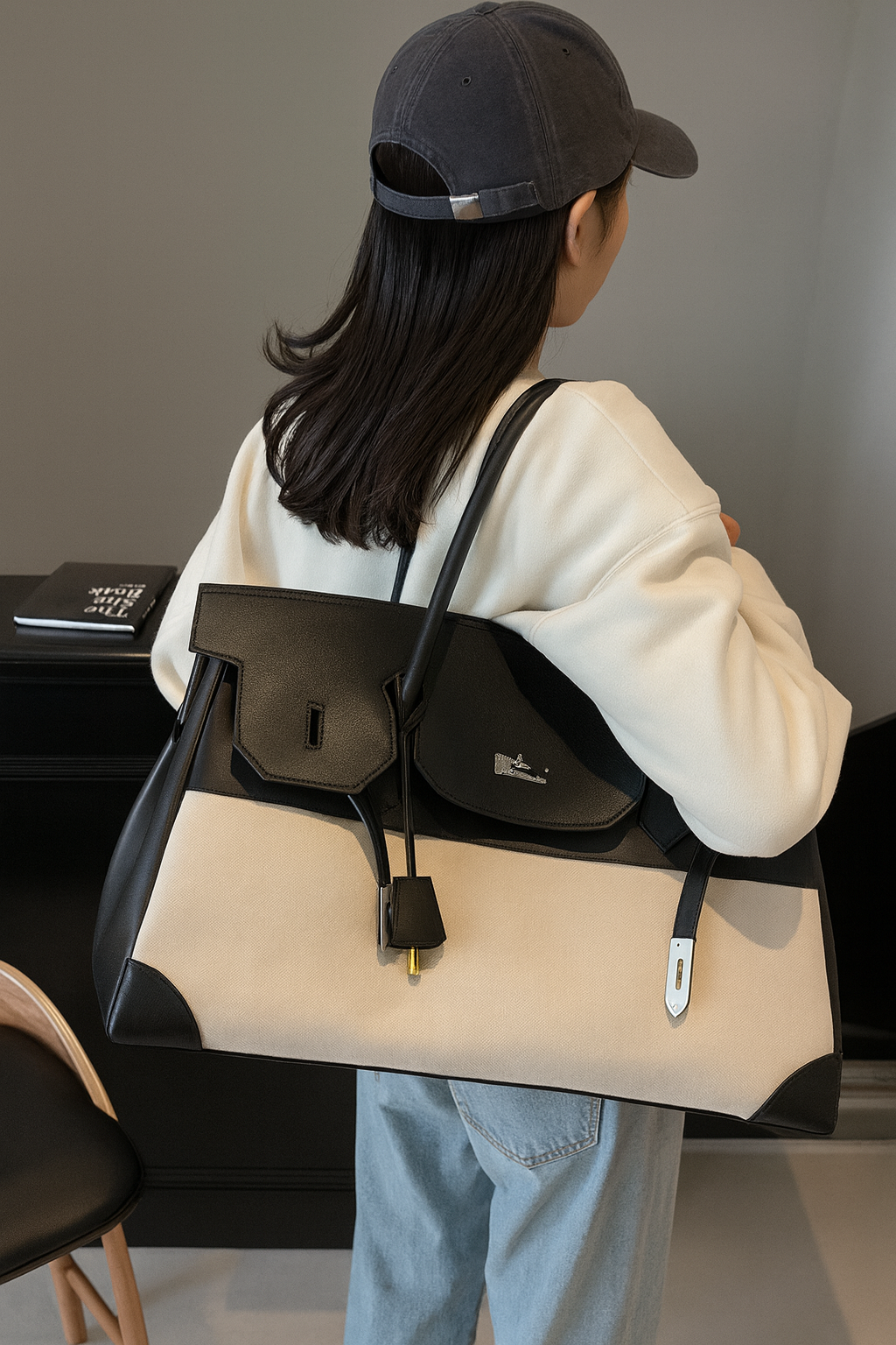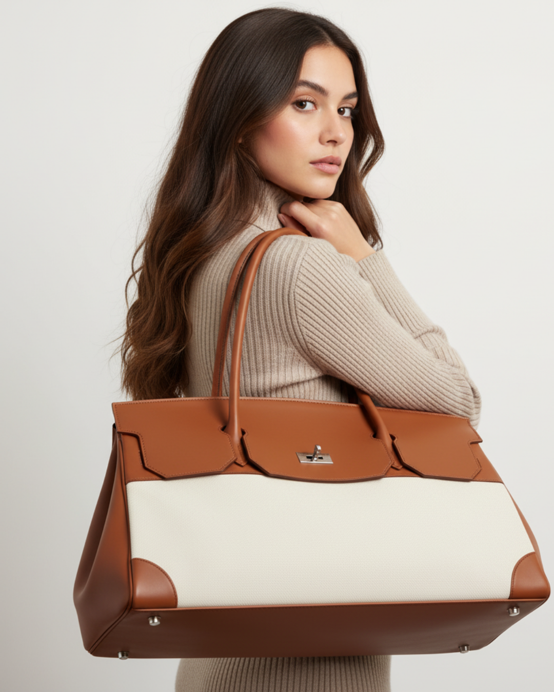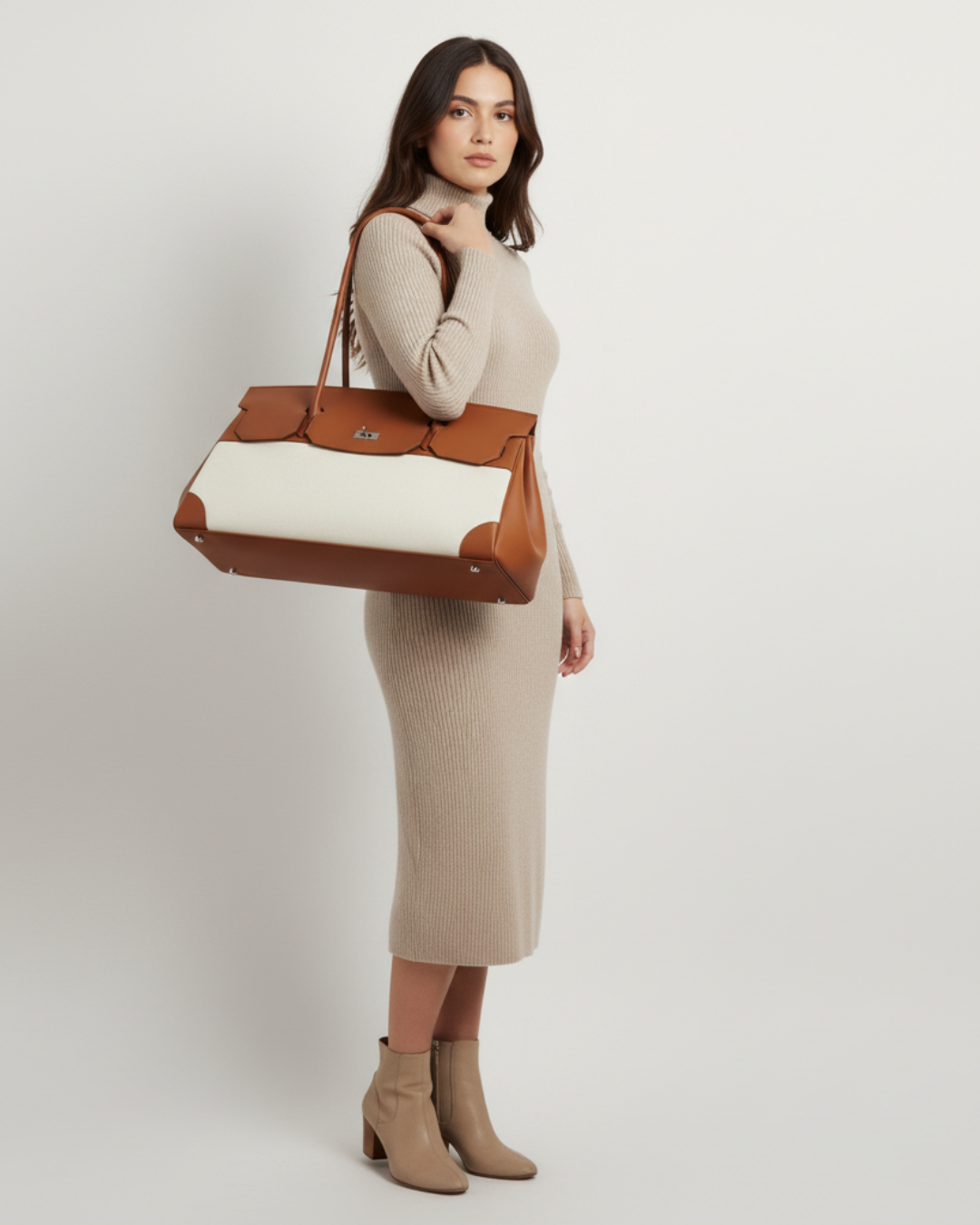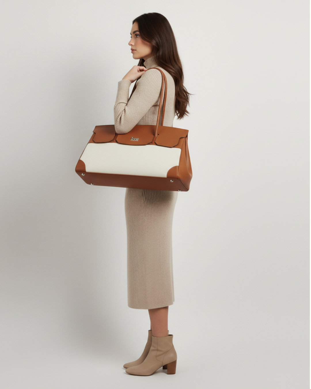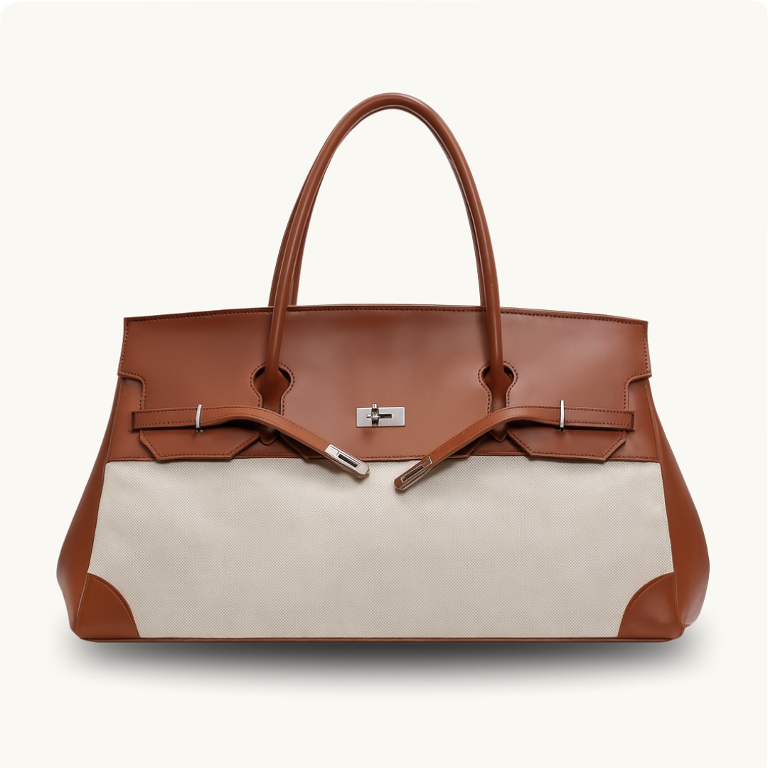 The Arc is designed for those who travel with style and purpose. Crafted in a striking mix of smooth LuxeSkin™ trim and textured canvas, its oversized silhouette offers both elegance and function. With structured lines, refined hardware, and generous space, Arc is the ultimate companion for sophisticated getaways.