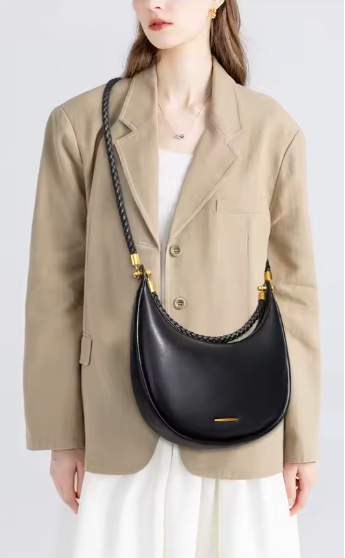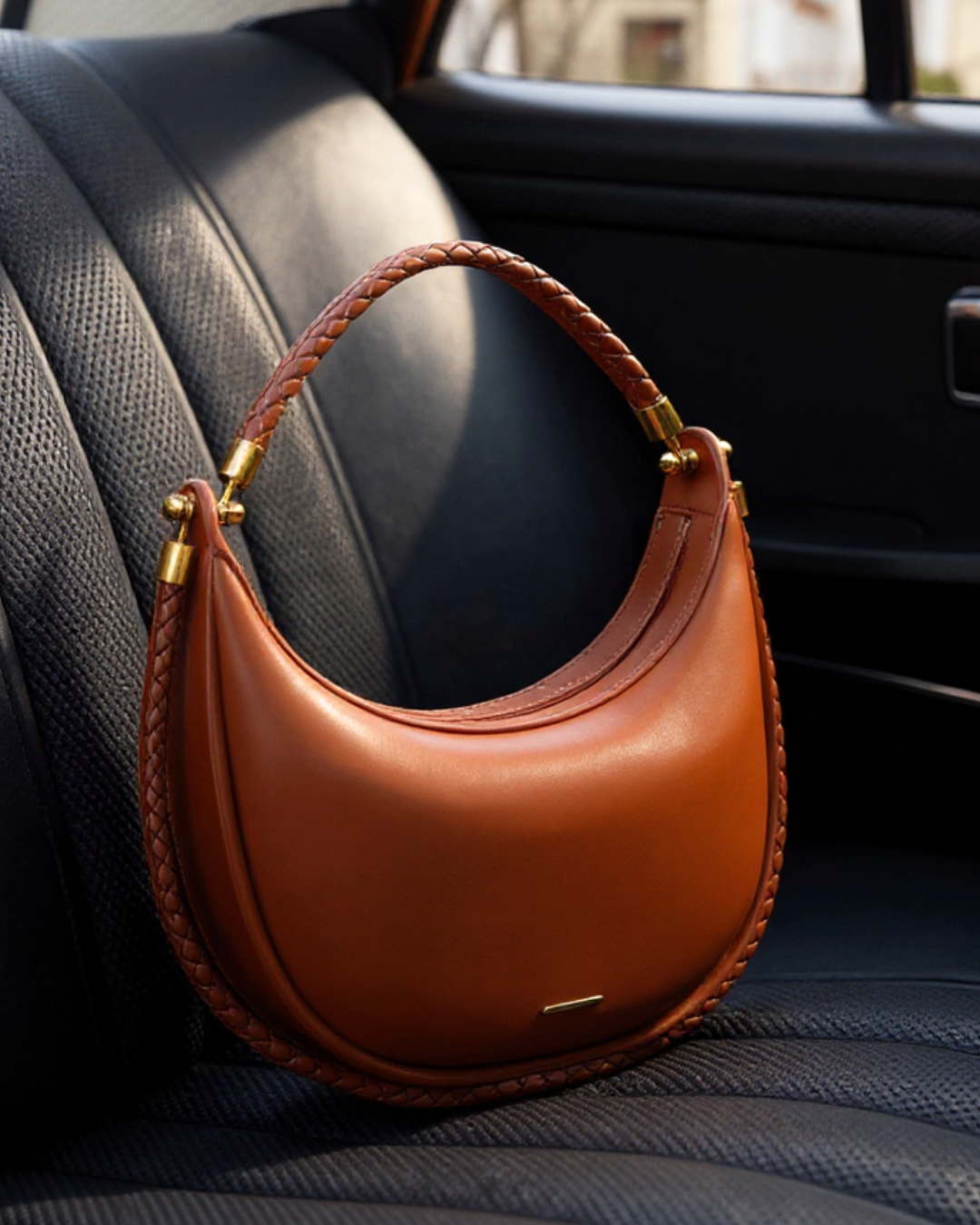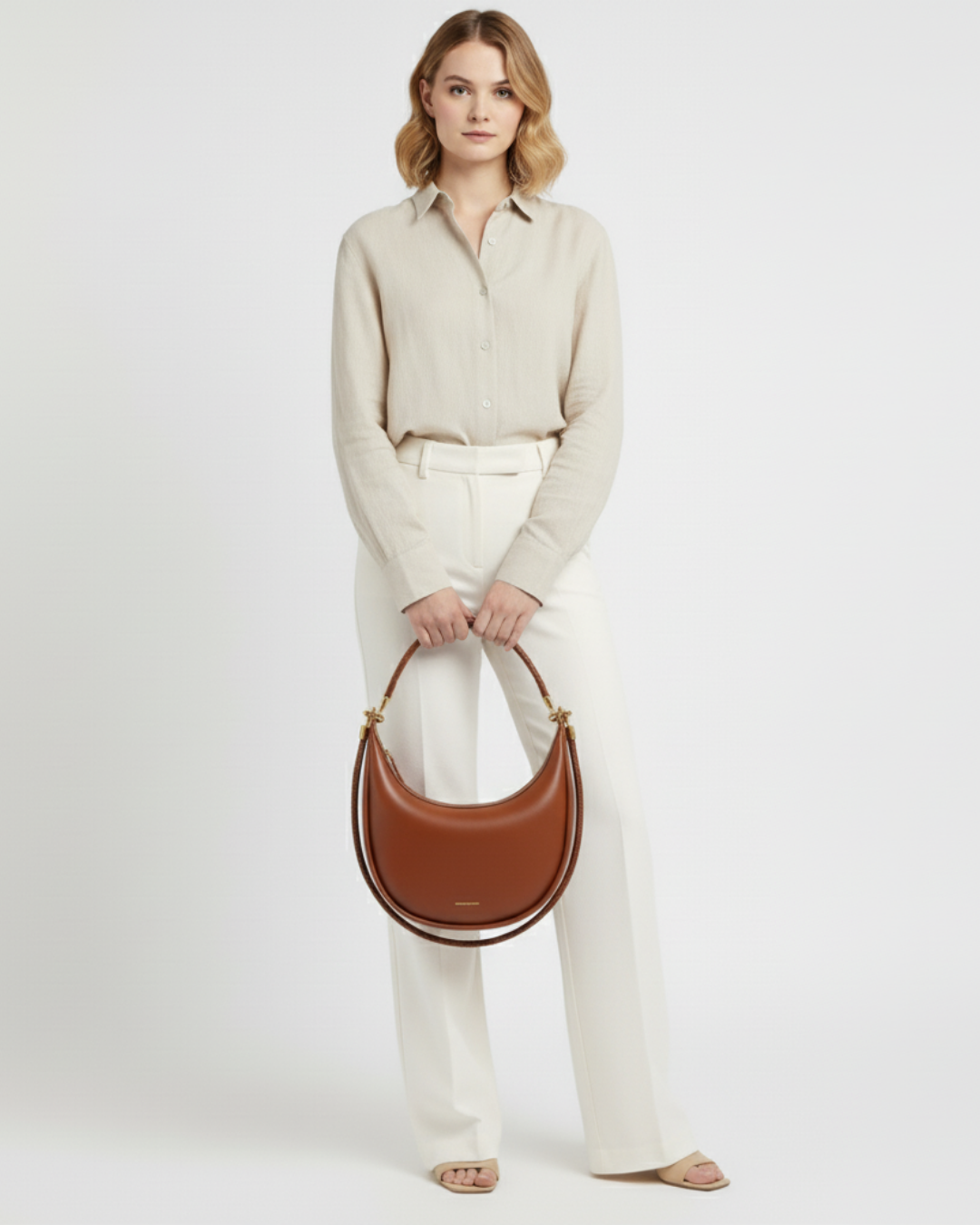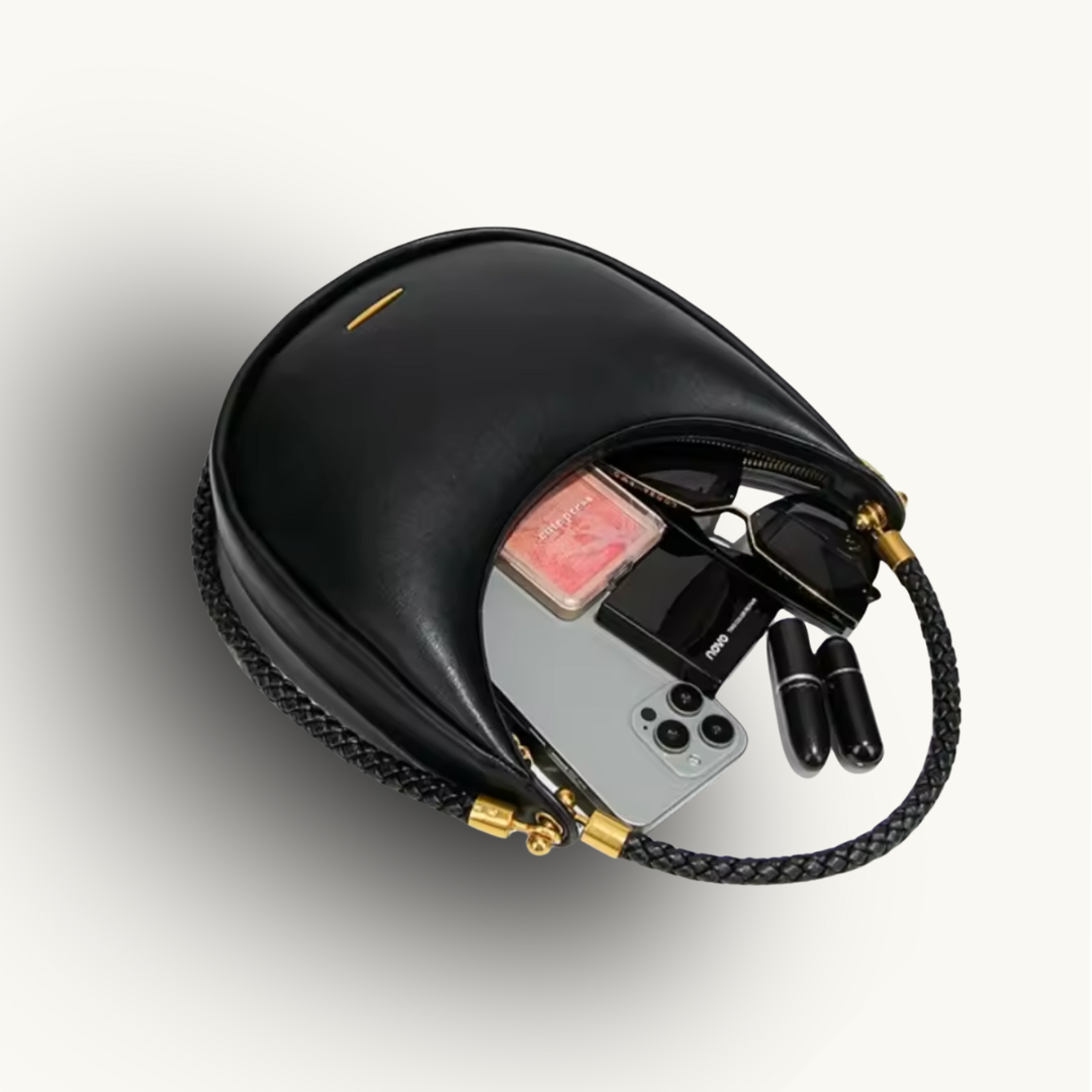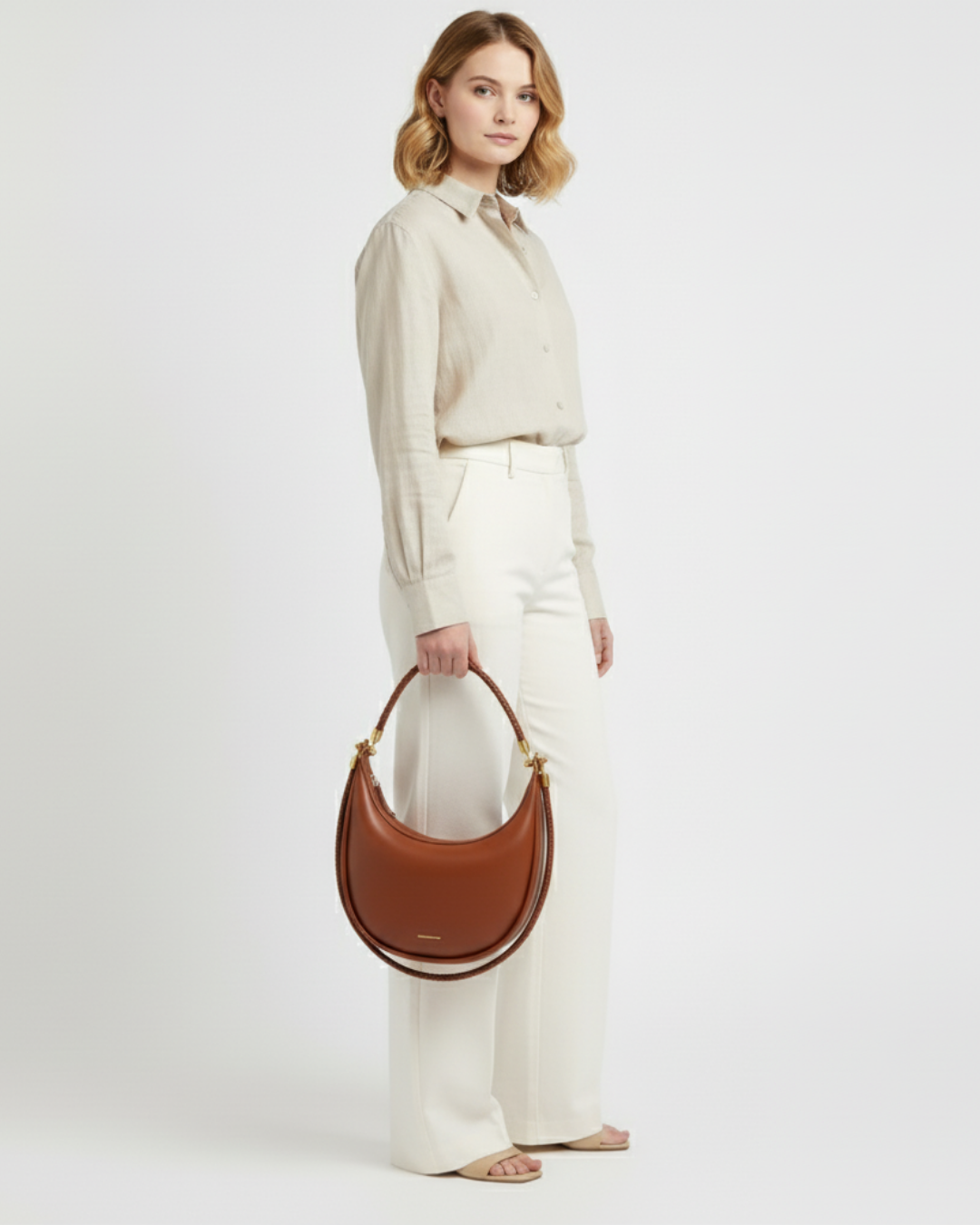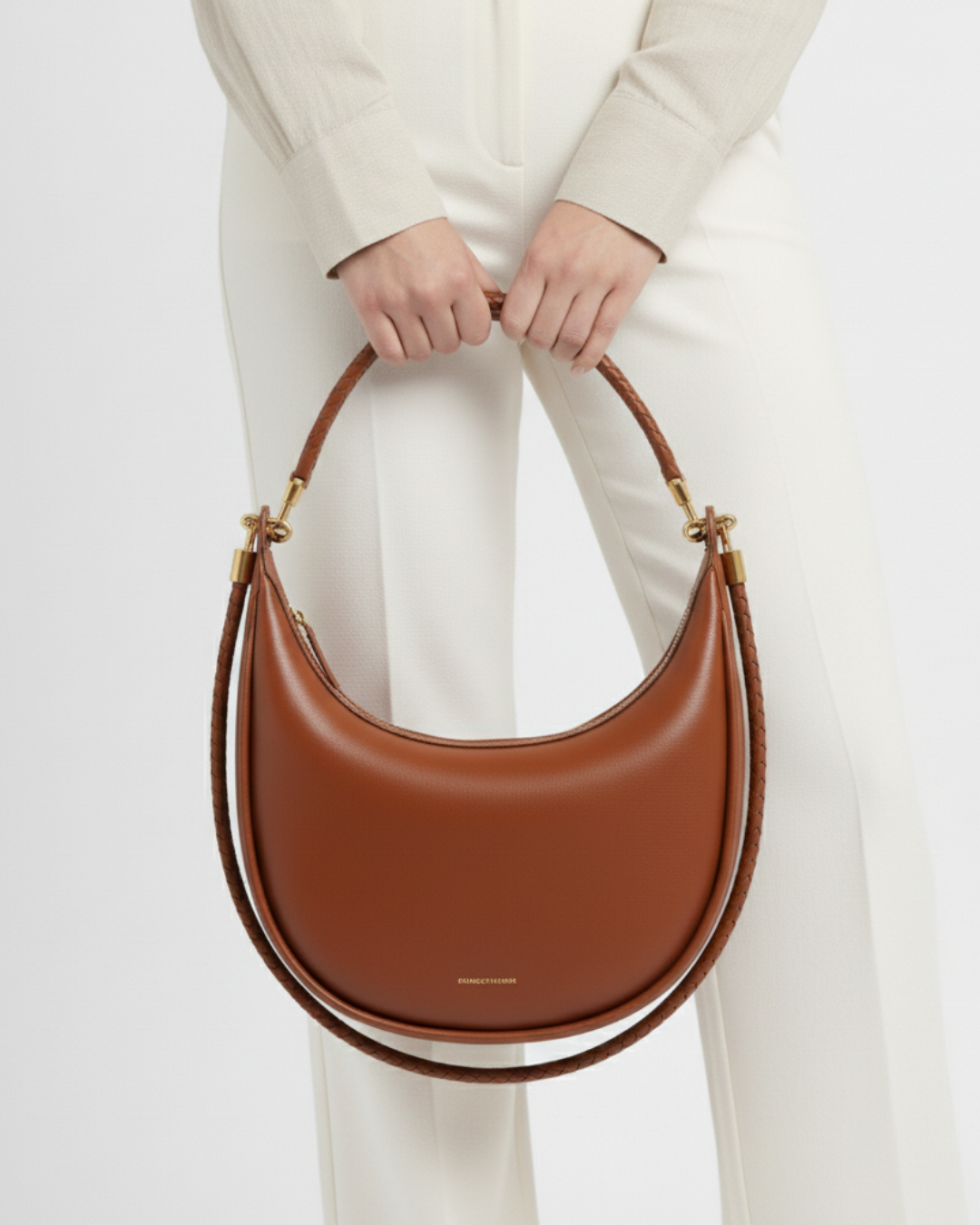 Eclipse Luxe is sculpted to perfection, this crescent-shaped masterpiece blends architectural elegance with timeless allure. Crafted in rich LuxeSkin™ and framed by braided handles with gold-toned accents, it exudes sophistication with a hint of boldness. Effortlessly refined, it’s the ultimate statement piece for day-to-night dressing.