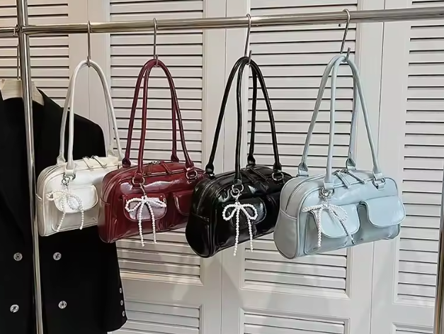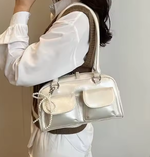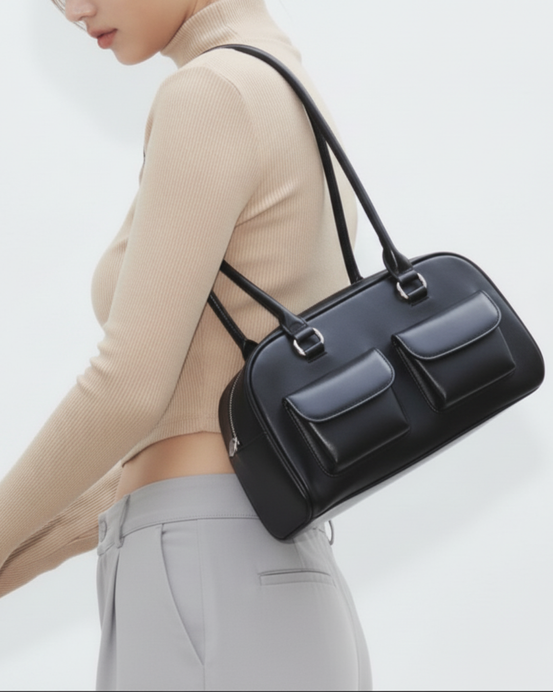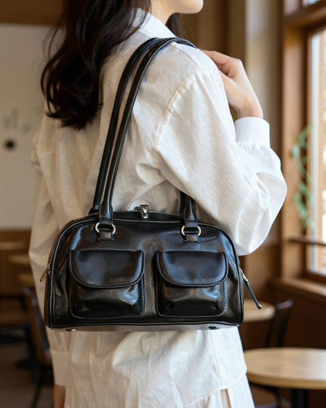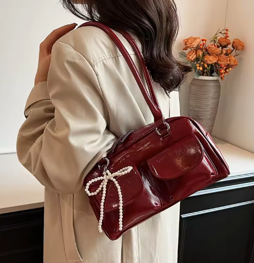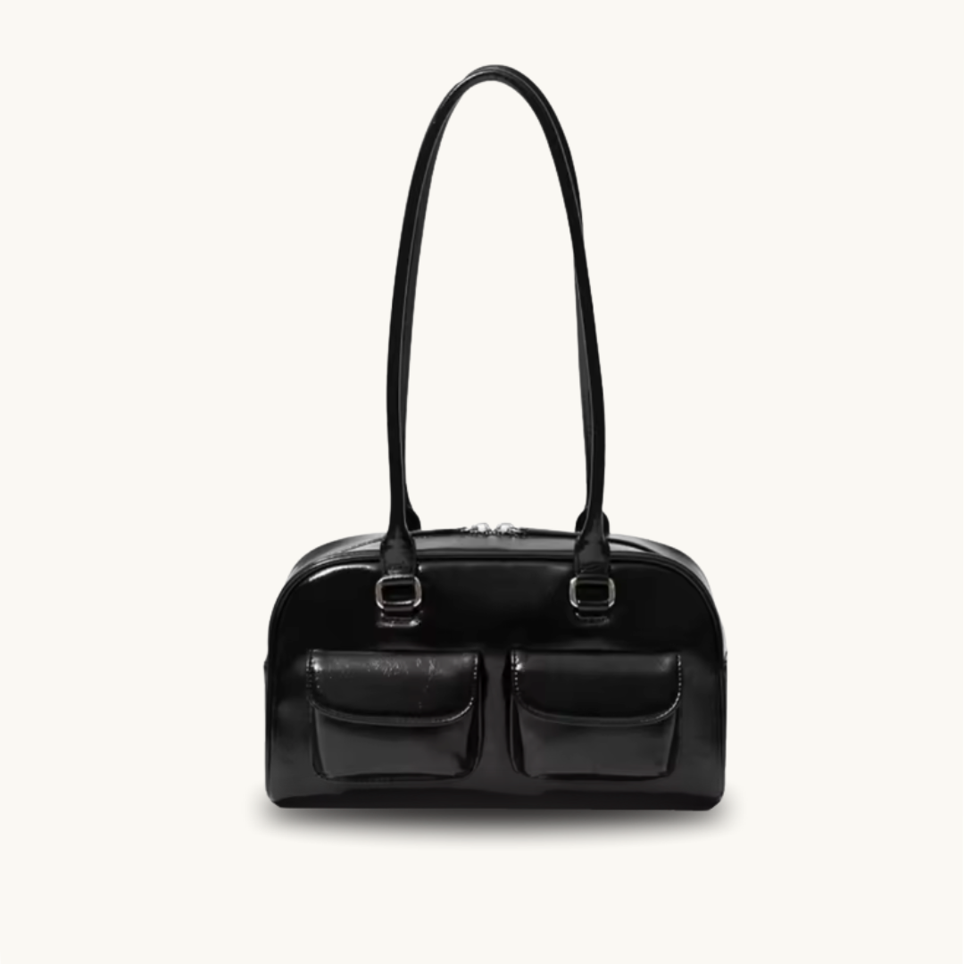 Introducing the Éthéra — a sleek embodiment of modern edge and timeless elegance. Crafted from high-gloss LuxeSkin™ , this structured beauty features dual front pockets and elongated handles, merging utility with effortless sophistication. Whether by your side on city strolls or evening outings, Éthéra is the cool-girl essential that turns heads without trying.