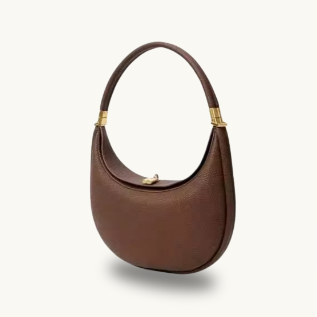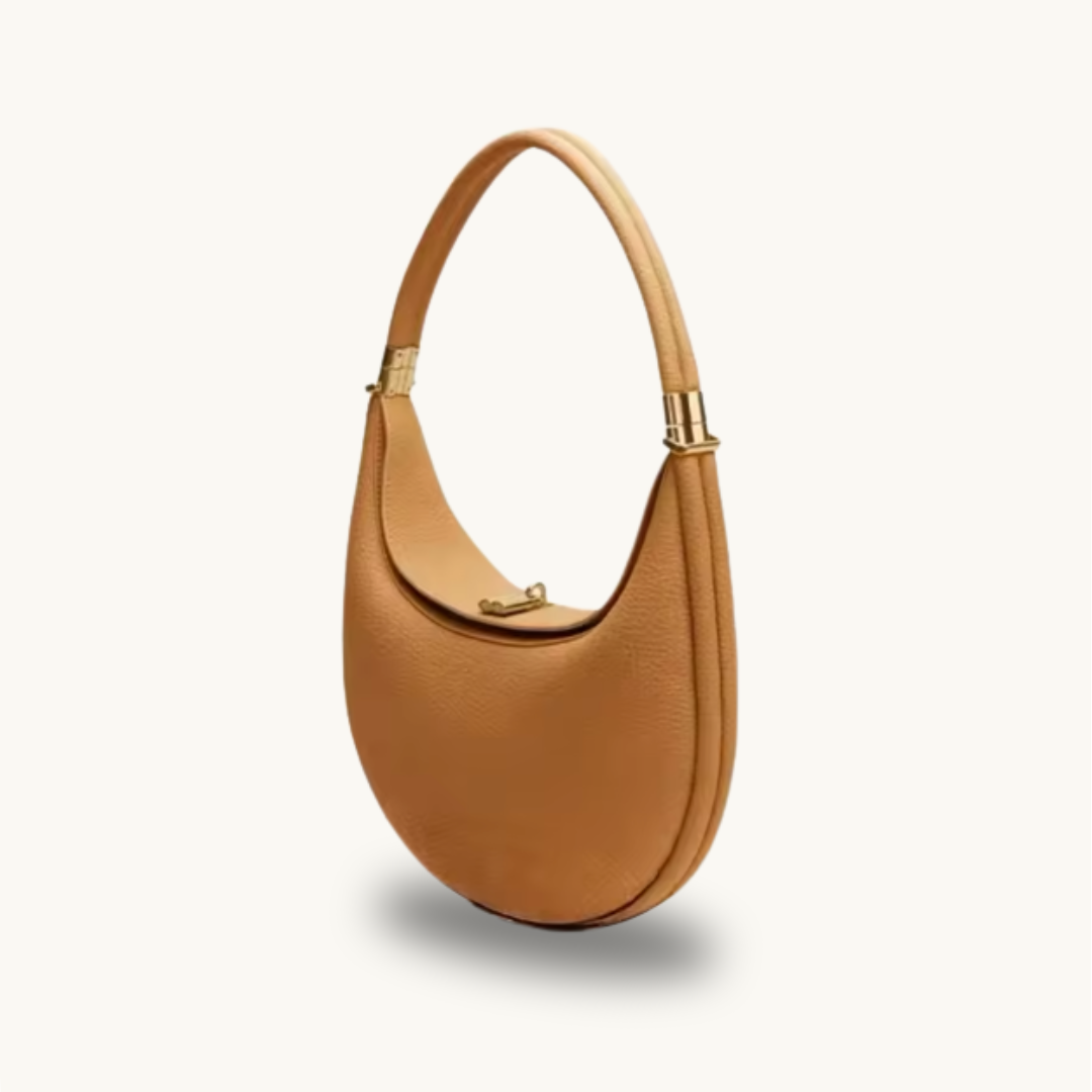 Introducing the Halo — a sculptural silhouette inspired by ethereal charm. Crafted from supple, pebble-textured leather in a choice of seven hues, it features elegant gold-tone hardware and a gracefully curved handle that evokes understated sophistication. Versatile in design, the Halo can be worn three ways — as a shoulder bag, on the arm, or carried by hand — making it a timeless statement of modern grace and effortless elegance.