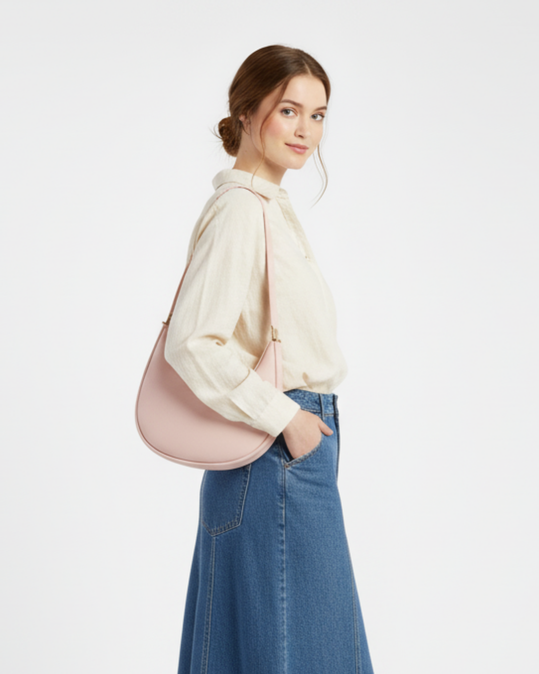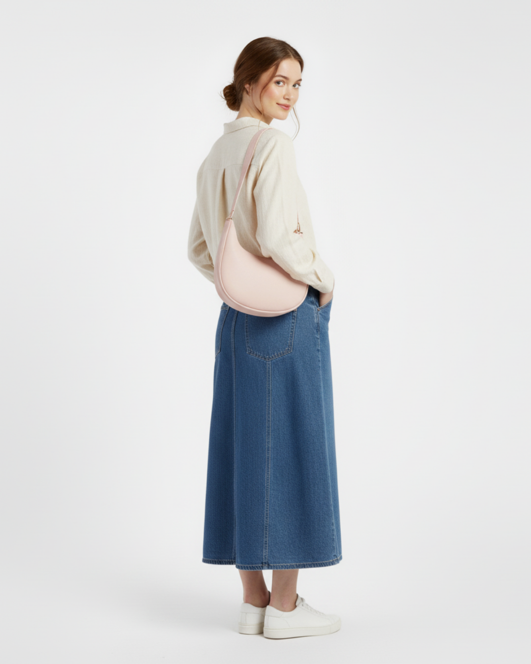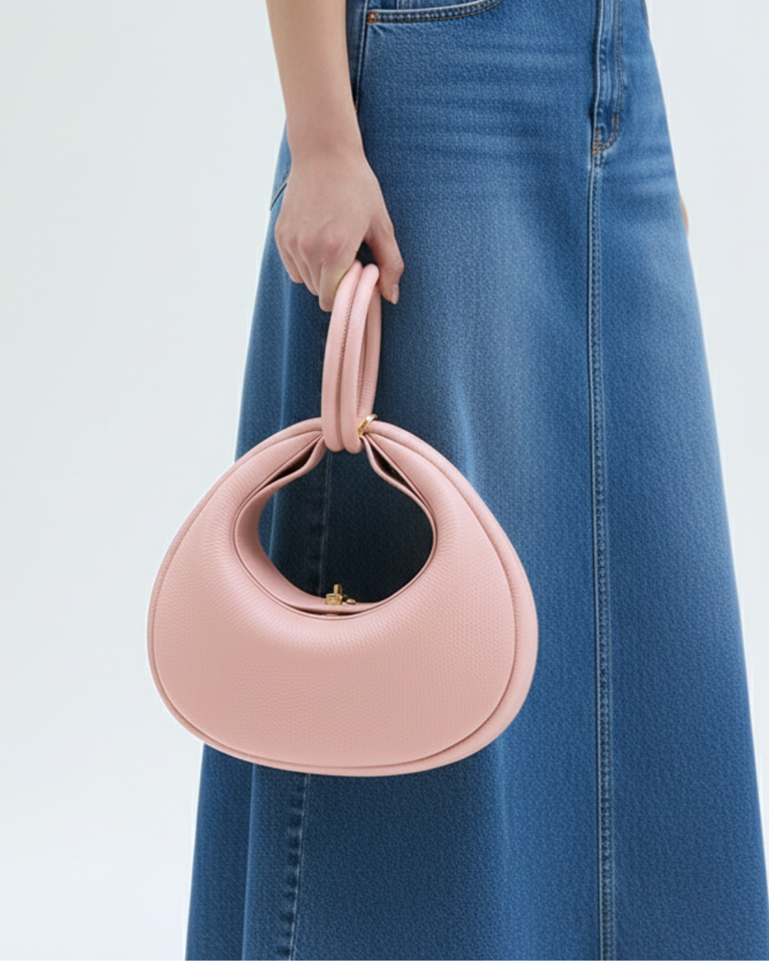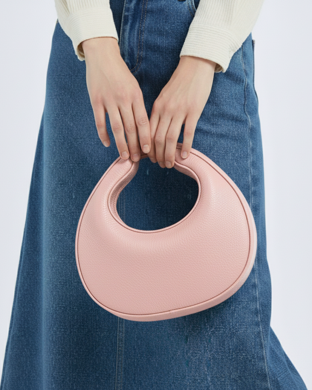 Introducing the Halo — a sculptural silhouette inspired by ethereal charm. Crafted from supple, pebble-textured LuxeSkin™ in a choice of seven hues, it features elegant gold-tone hardware and a gracefully curved handle that evokes understated sophistication. Versatile in design, the Halo can be worn three ways — as a shoulder bag, on the arm, or carried by hand — making it a timeless statement of modern grace and effortless elegance.