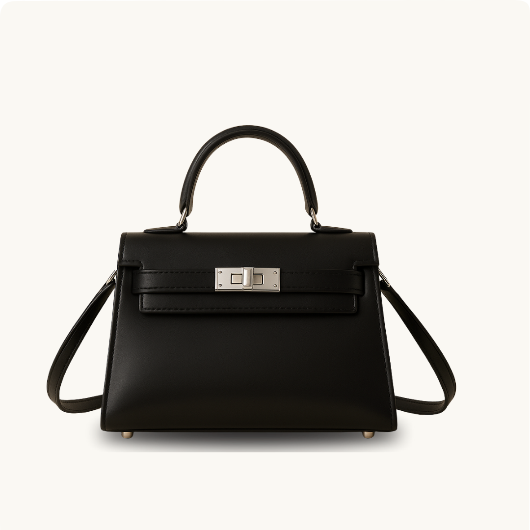 The Hera Satiné takes on a sleeker edge in smooth LuxeSkin™ Material, offering a polished, modern twist on its classic silhouette. Its clean surface, paired with sharp lines and gleaming silver hardware, creates a strikingly refined look. Available in three sizes and versatile enough to wear crossbody or carry by hand, this version of Hera is pure understated sophistication.