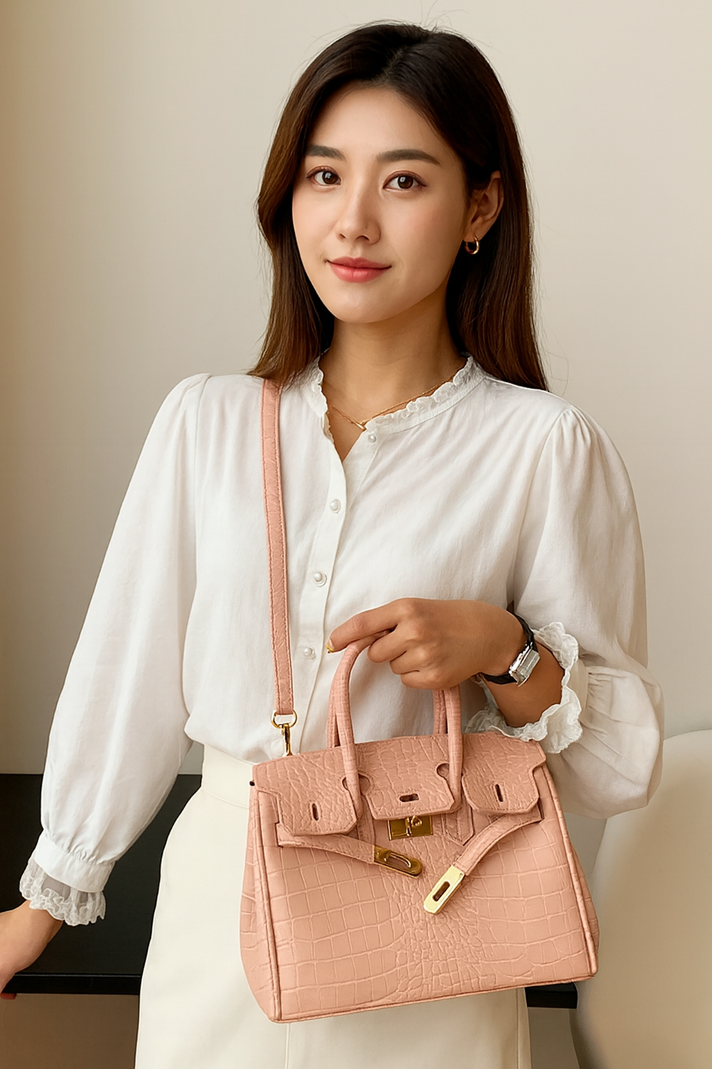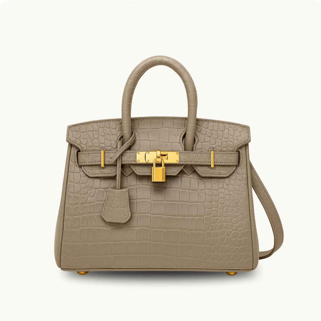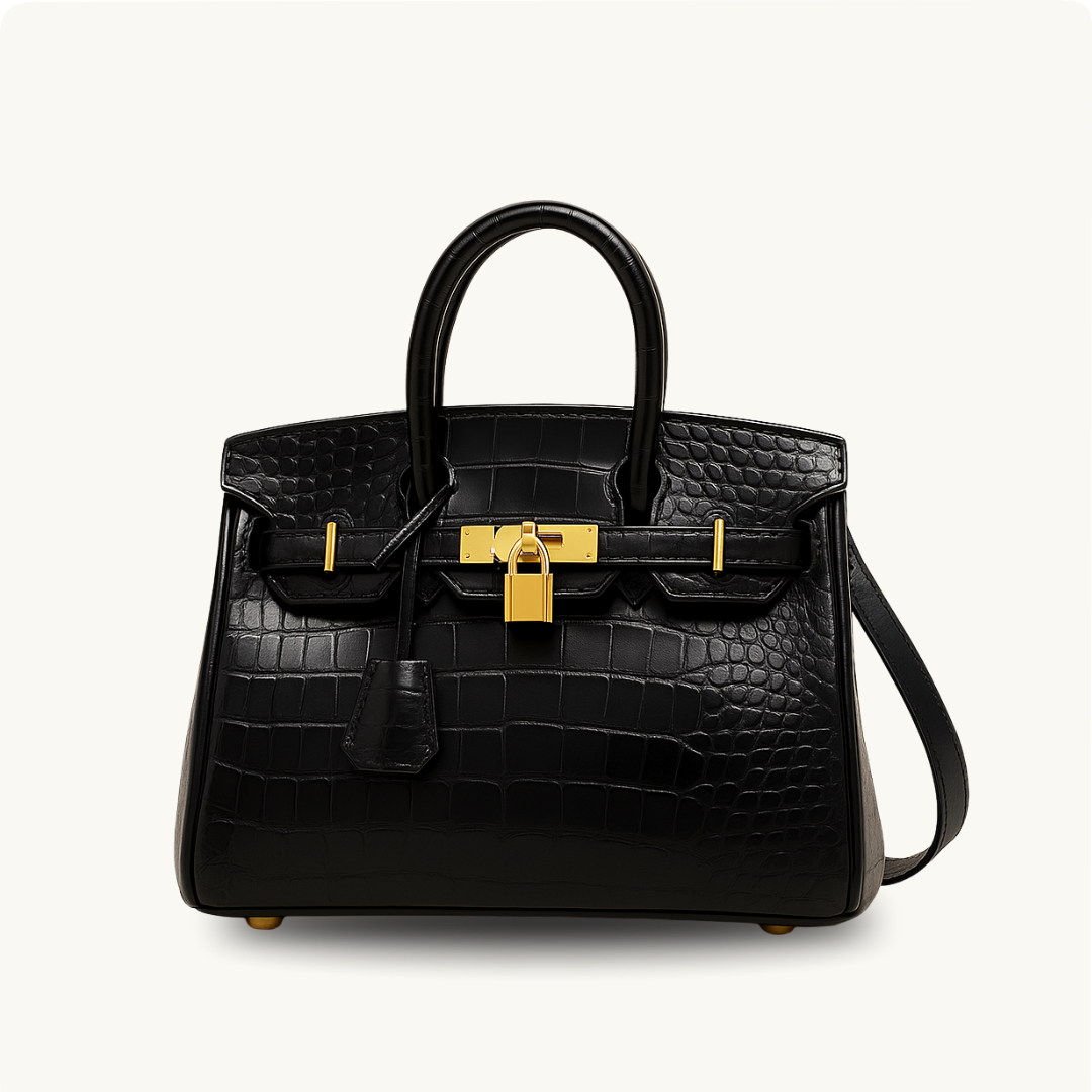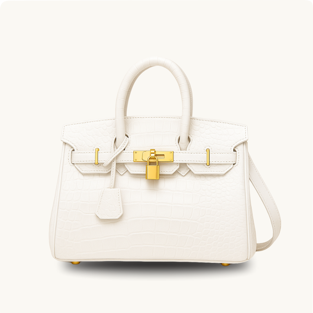 The Ophelia Eden channels timeless elegance with a bold, textured twist. Crafted in embossed LuxeSkin™ Material that mimics the allure of crocodile, it features a structured silhouette, dual top handles, and gleaming gold hardware. Available in two sizes, Ophelia Eden is the perfect blend of sophistication and statement-making style.