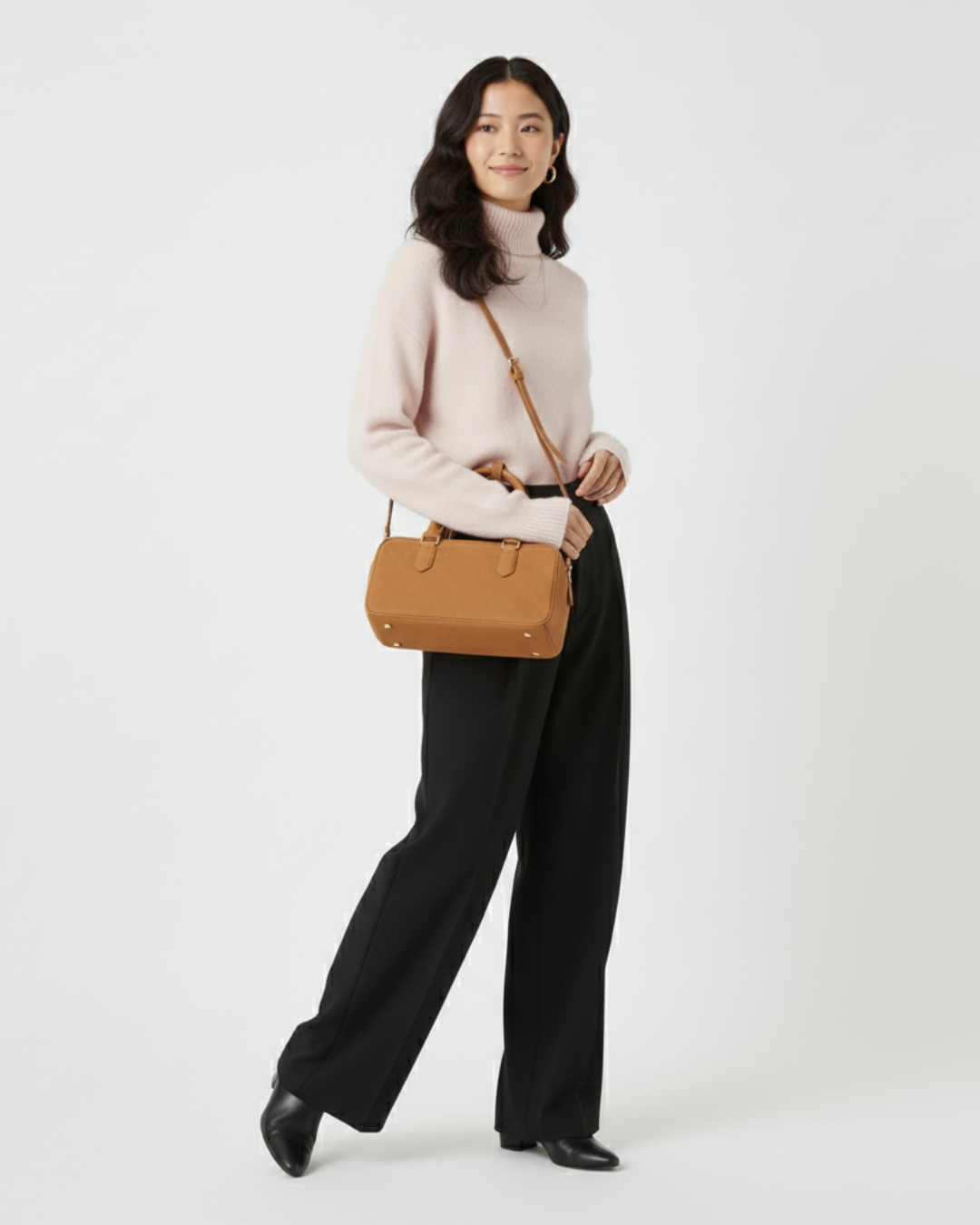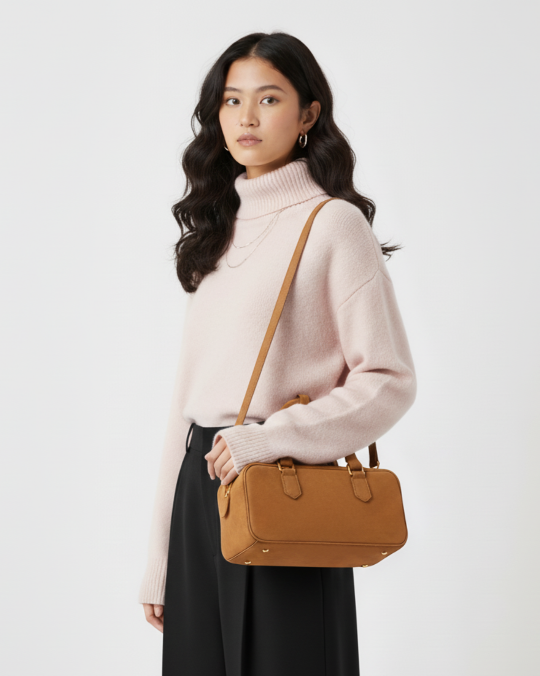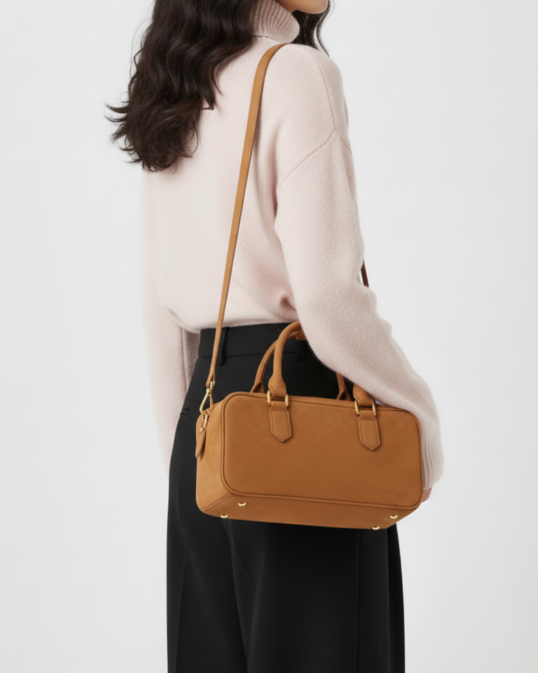 Introducing the Serphina 2.0 — a refined box silhouette reimagined in plush suede over genuine leather for a soft, tactile finish. Accented with gold-tone hardware and available in two versatile sizes, it blends timeless form with quiet sophistication. Whether carried by hand or styled crossbody, Serphina 2.0 is an effortlessly elegant staple for elevated days.